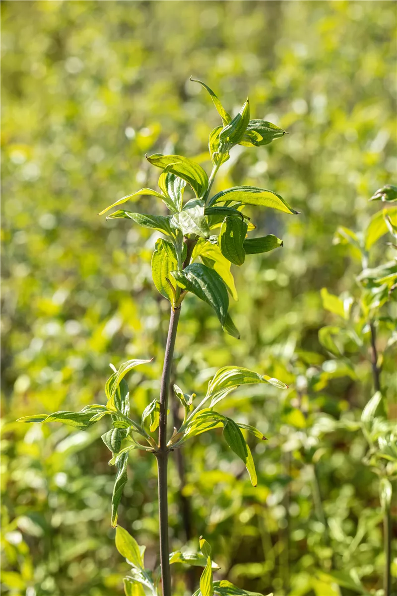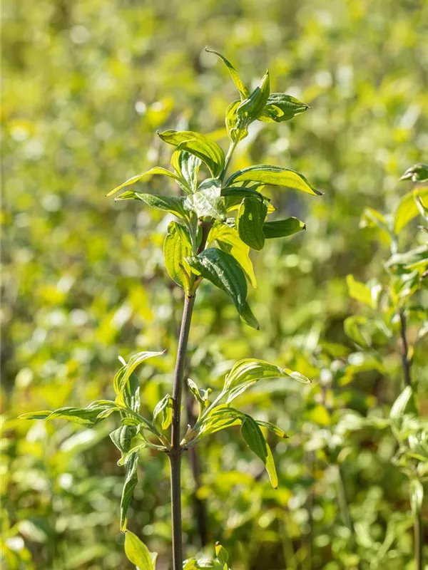 Die Triebe von Cornus mas 'Schönbrunner Gourmet Dirndl' sind grau-grün.