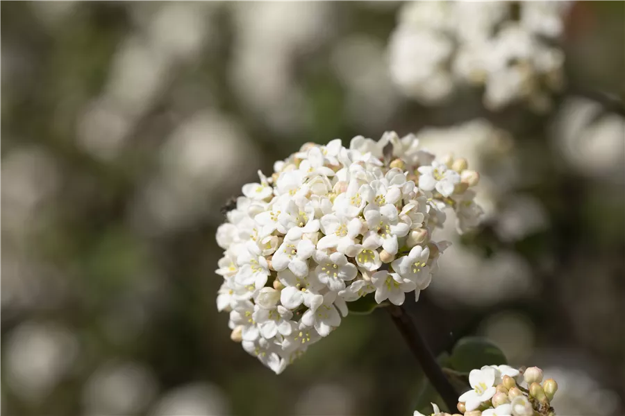 Die weißen Blüten des Duftschneeball 'Candidissimum' erscheinen in Rispen von November bis März. Diese sind stark duftend.