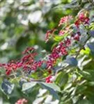 Besonders dekorativ sind die schwarz-roten, ovalen Steinfrüchte von Viburnum lantana. Diese erscheinen ab August.