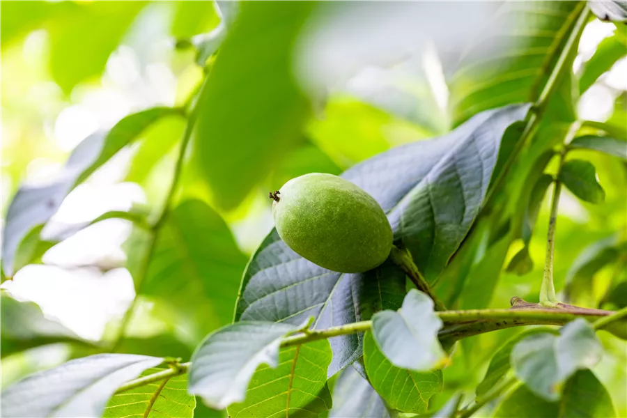Die Walnuss 'Buccaneer' ist sommergrün.