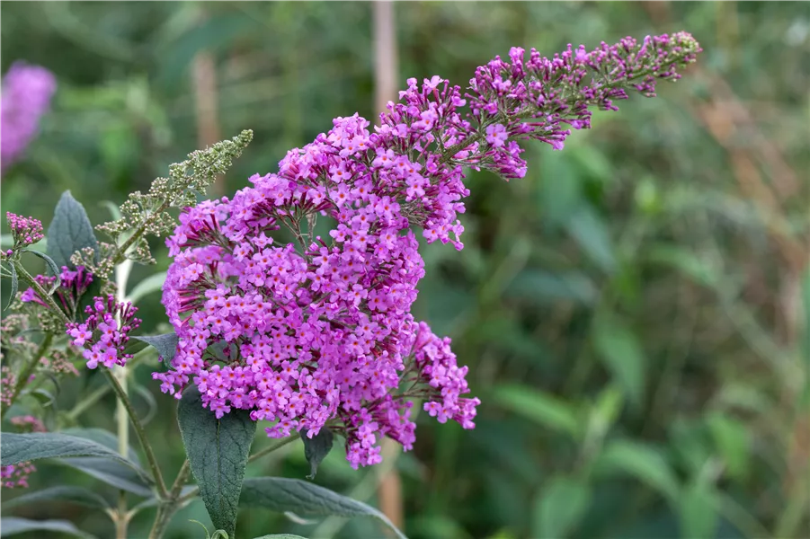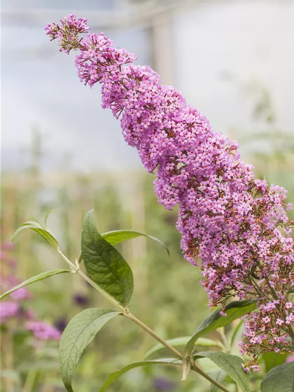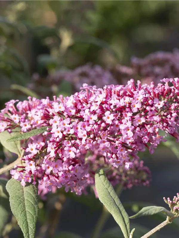 Die rosafarbenen Blüten des Sommerflieder 'Pink Delight' erscheinen in Rispen von Juli bis Oktober. Diese werden etwa 25 - 30 cm groß und sind stark duftend.