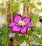 Die sommergrünen Blätter der Waldrebe 'Ville de Lyon' sind mittelgrün, gefiedert, gegenständig.