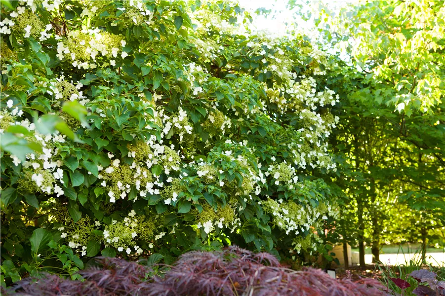 Synonyme (botanisch): Hydrangea anomala ssp. petiolaris, Hydrangea tiliaefolia.