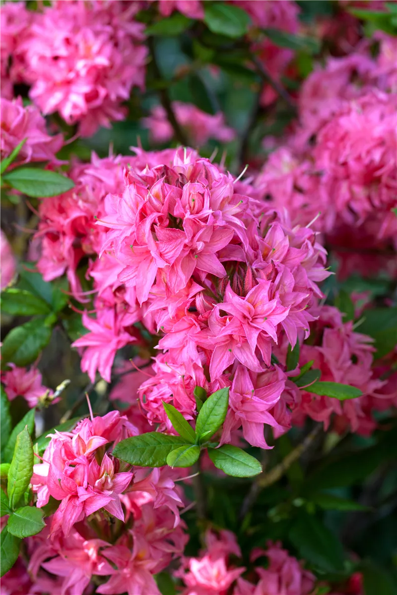 Die Sommergrüne Azalee 'Homebush' bringt von Ende Mai bis Mitte Juni ein wahres Blütenmeer in Pink hervor.