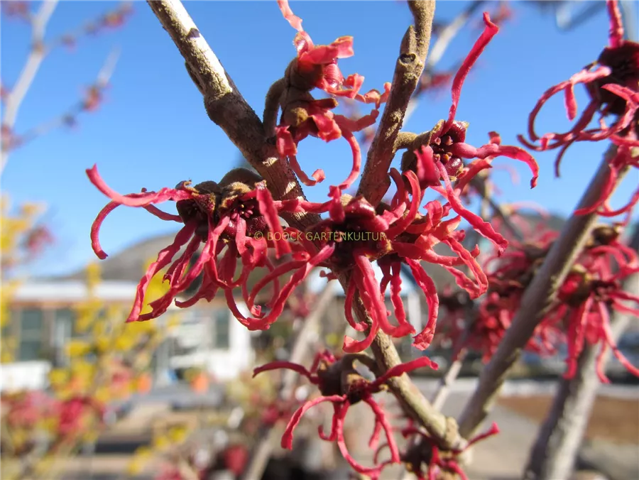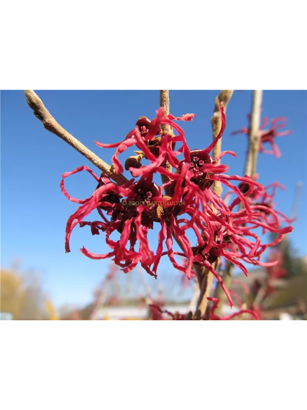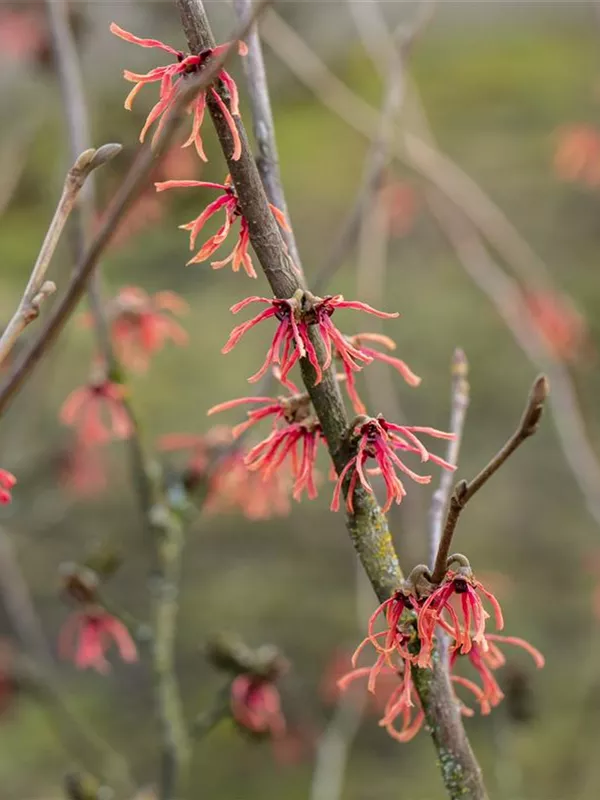 Hamamelis x intermedia 'Ruby Glow' ist ein Tiefwurzler und bildet, je nach Boden, fein verzweigte Wurzeln.