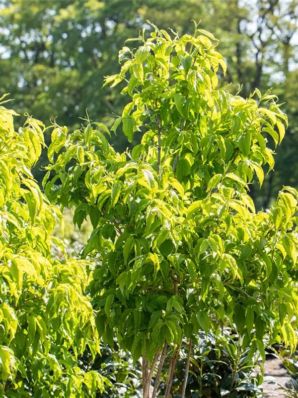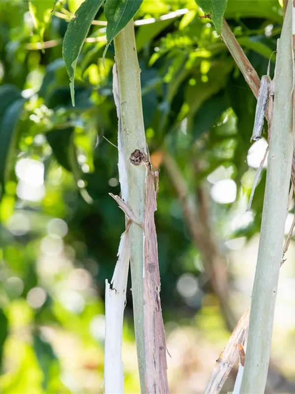 Braun-gelbe, abblätternde Rinde macht diese Pflanze zu einem Blickfang in jedem Garten.