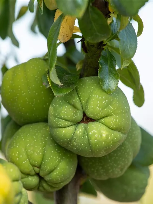Die Kernfrüchte verströmen einen angenehmen Duft. Die Kernfrüchte sind birnenförmig.