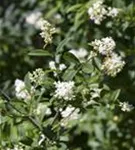 Die cremeweißen Blüten erscheinen von Juni bis Juli. Diese sind stark duftend.