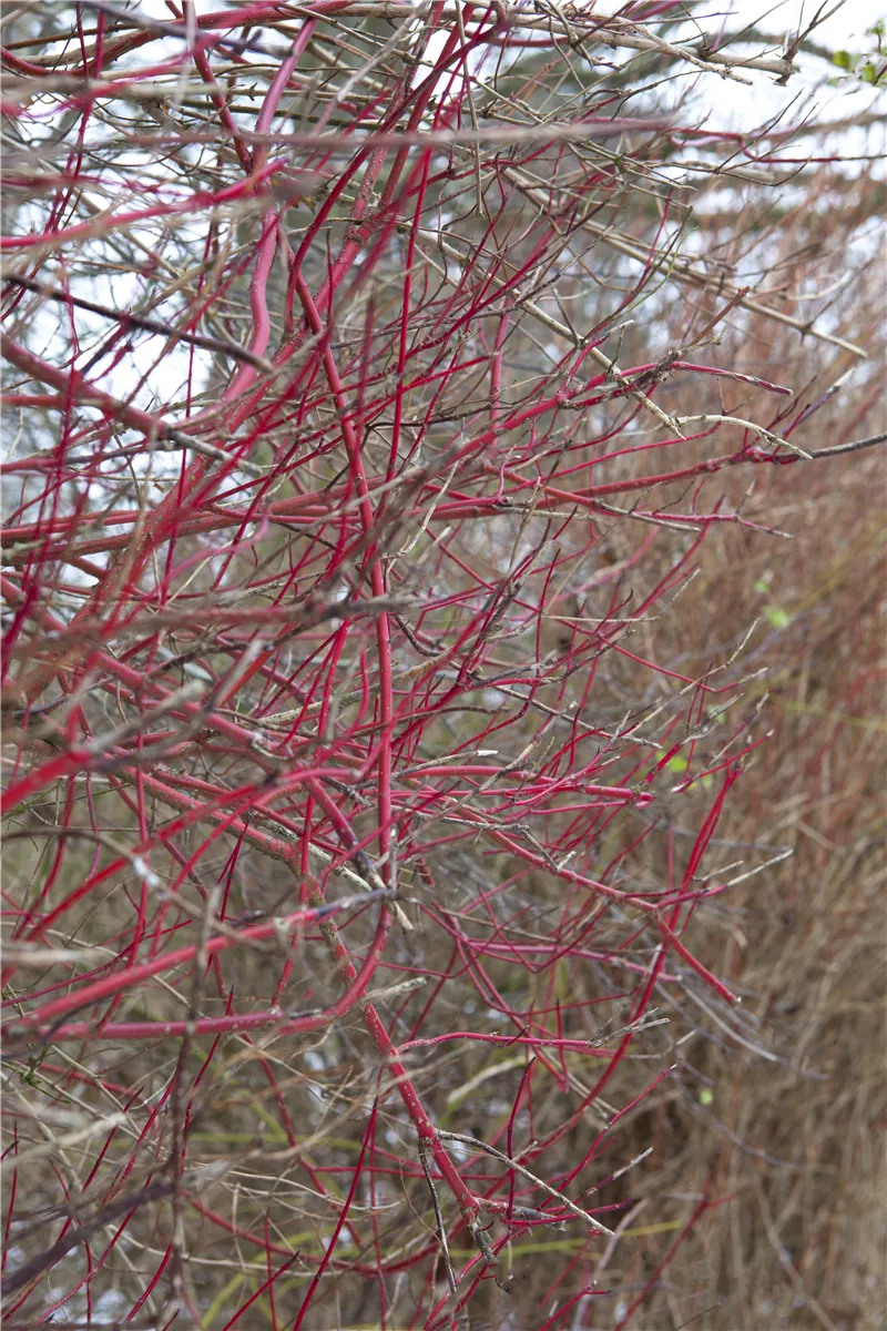 Der Purpur-Hartriegel 'Sibirica' hat rote Rinde.