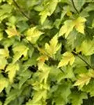 Hoher Blattschmuckwert. Die sommergrünen Blätter der Fasanenspiere 'Nugget' sind goldgelb, eiförmig, wechselständig, gelappt. Diese sind etwa 5 - 10 cm groß. Fasanenspiere 'Nugget' zeigt sich leuchtend bernsteingelb im Herbst.