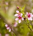 Die rosafarbenen, schalenförmigen Blüten erscheinen von März bis April.