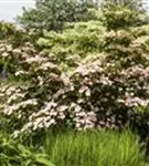 Japanischer Blumen-Hartriegel 'Satomi'® ist ein aufrecht wachsender Großstrauch. Er erreicht gewöhnlich eine Höhe von 4 - 6 m und wird ca. 4 - 5 m breit. Langsam wachsend.