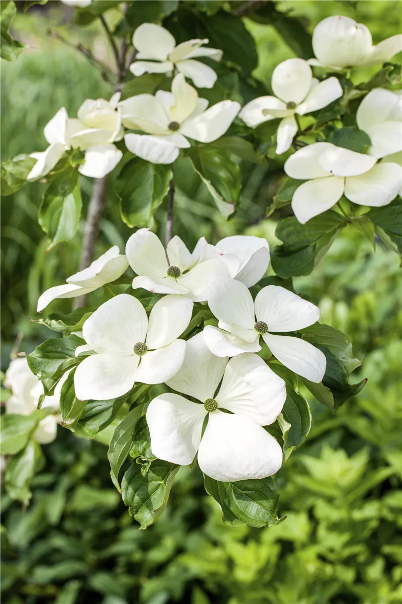 Der Japanische Blumen-Hartriegel 'Venus'® bildet weiße Blüten von Mai bis Juni.
