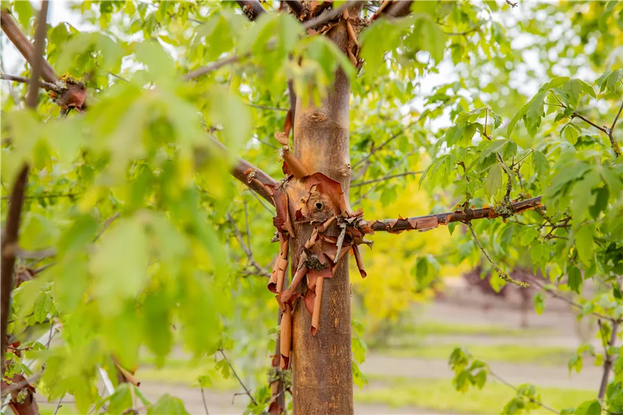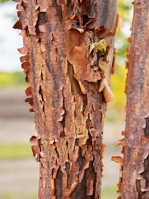 Braune, abrollende Rinde macht diese Pflanze zu einem Blickfang in jedem Garten.