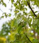 Die hellgelben Blüten des Zimt-Ahorn erscheinen in Trugdolden im Mai.