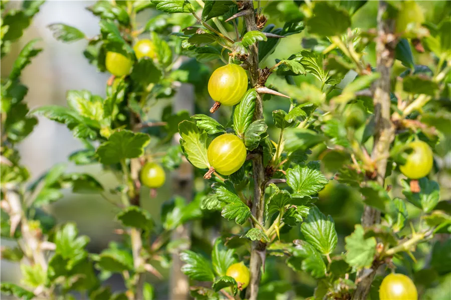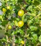 Die grüngelben bis grünen Beeren haben einen süß-säuerlichen Geschmack. Reifezeit ab Juli.