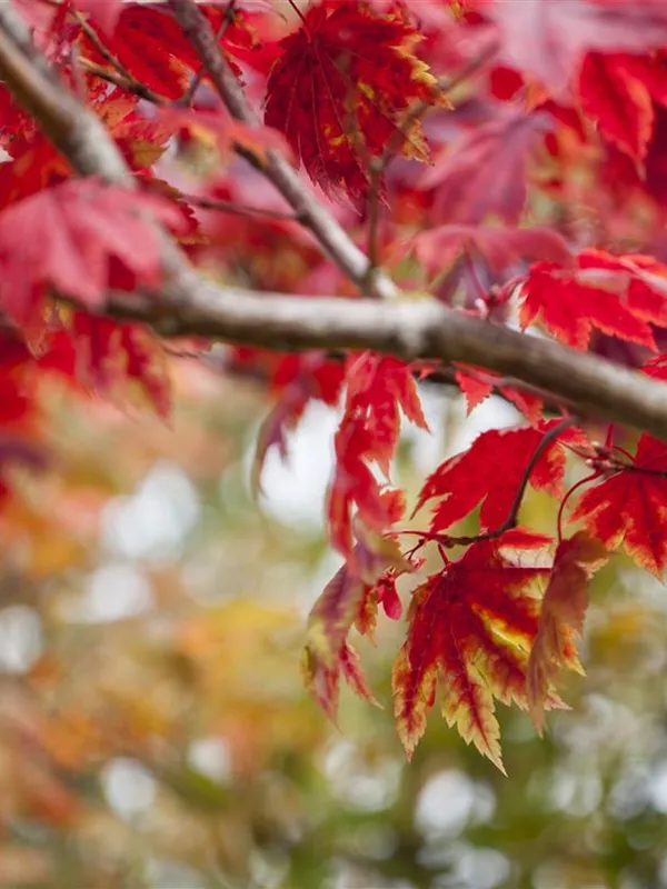 Besonders dekorativ sind die roten Früchte von Acer japonicum 'Vitifolium'.