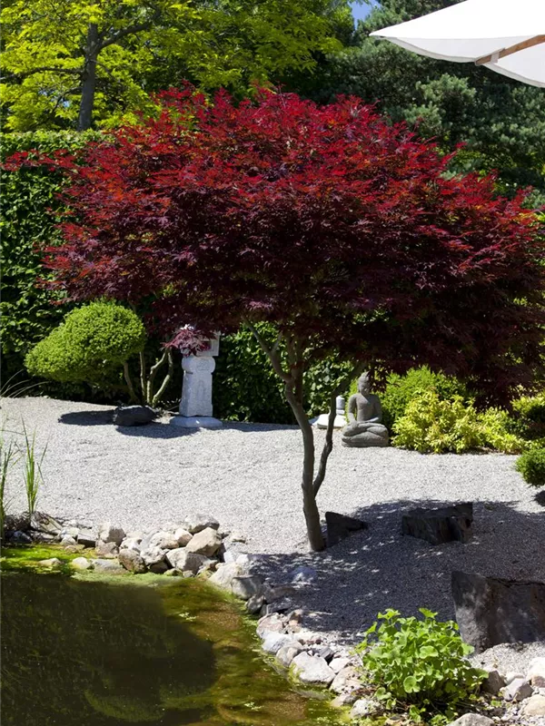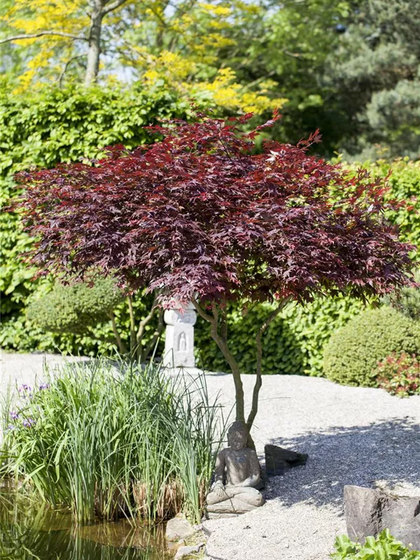 Acer palmatum atropurpureum, Japanischer Fächerahorn, ist wohl einer der bekanntesten und beliebtesten Ziergehölze.