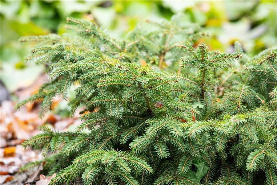 Die Nestfichte 'Nidiformis' ist immergrün. Ihre Nadeln sind hellgrün, stechend.