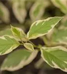 Der Niedrige Rotholz-Hartriegel 'White Gold' ist sommergrün.