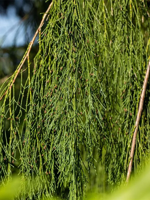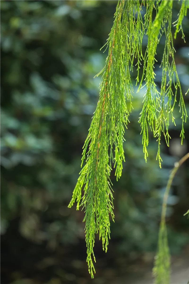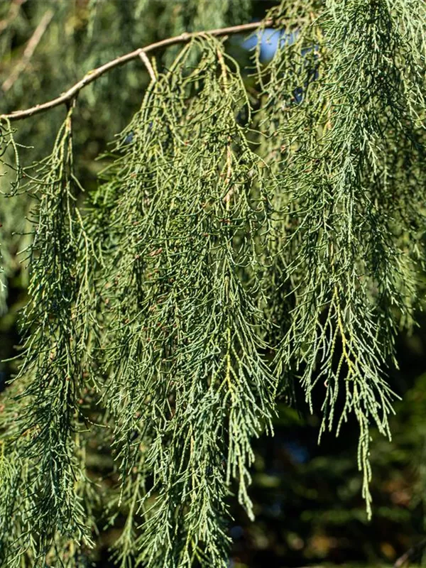 Die Gartenzypresse 'Imbricata Pendula' ist immergrün. Ihre Nadeln sind blau-grün.