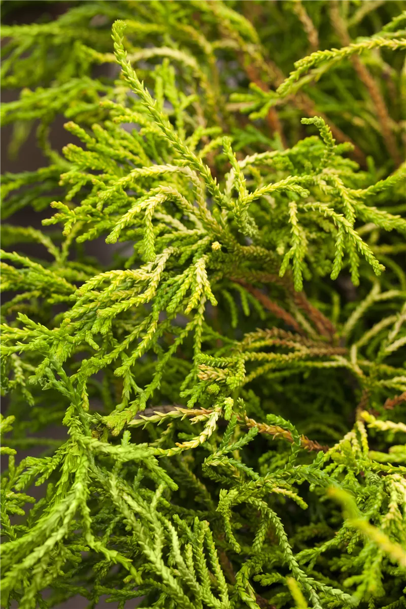 Die Hinoki-Scheinzypresse 'Gitte' ist immergrün. Ihre Nadeln sind gelb.
