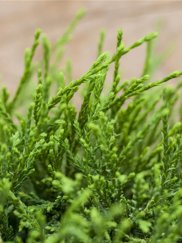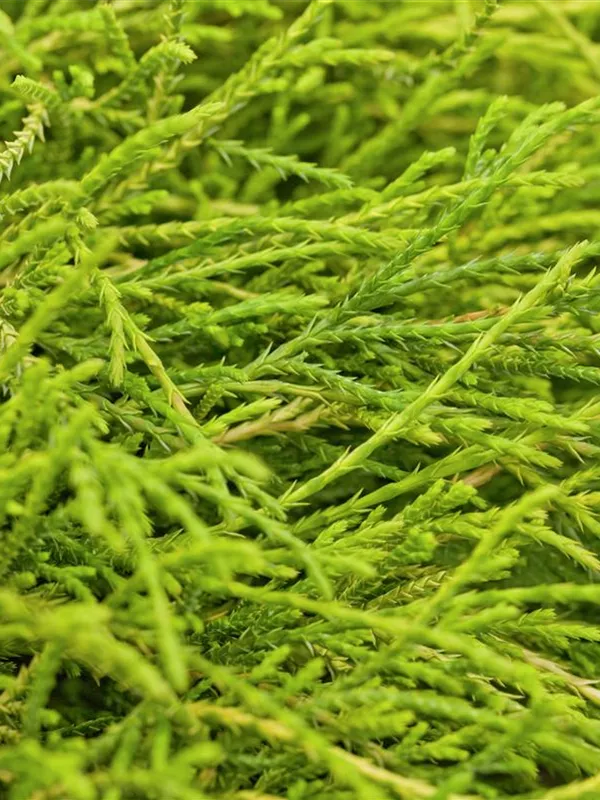 Sehr dekorativ. Die Gelbe Fadenzypresse 'Sungold' ist immergrün. Ihre Nadeln sind goldgelb, weich, schuppenförmig.