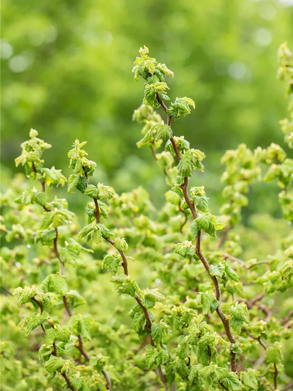 Die Zwerg-Korkenzieher-Haselnuss 'Scooter' weist eine gute Frosthärte auf.