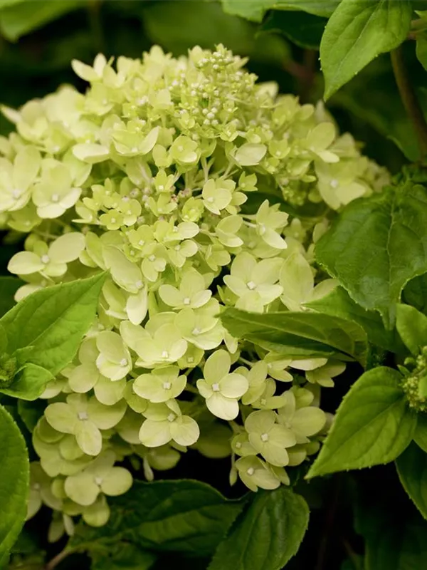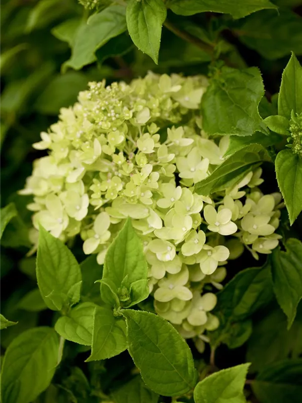 Die cremeweißen Blüten der Rispenhortensie 'Little Lime'® erscheinen in Rispen von Juli bis September. Diese sind angenehm duftend.
