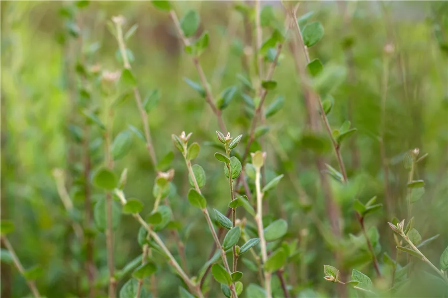 Besonders dekorativ sind die roten, runden Früchte von Cotoneaster dielsianus. Diese erscheinen ab September.