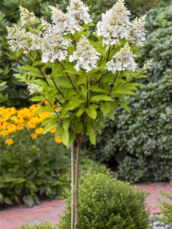 Hydrangea paniculata 'Pinky Winky'® wächst aufrecht und erreicht gewöhnlich eine Höhe von 1,5 - 2 m und wird bis zu 1 - 1,5 m breit.