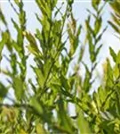 Die sommergrünen Blätter der Kugelweide 'Nana' sind blau-grün, lanzettlich, wechselständig. Diese sind etwa 8 - 10 cm groß.