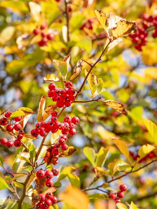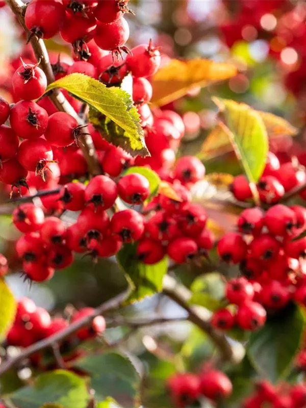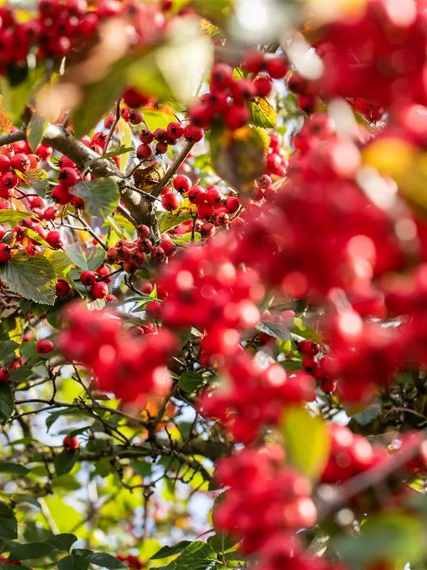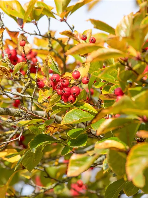 Besonders dekorativ sind die scharlachroten, runden Früchte von Crataegus persimilis. Diese erscheinen ab September.