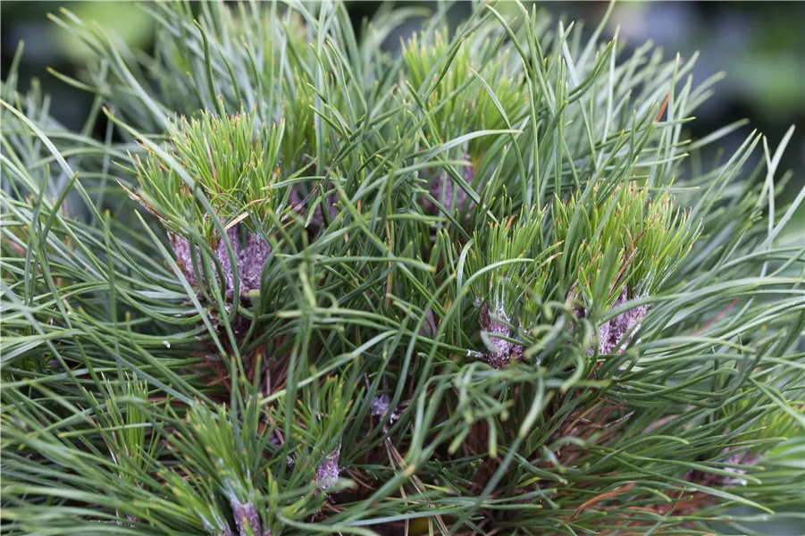 Die Berg-Kiefer 'Hesse' ist immergrün. Ihre Nadeln sind dunkelgrün.
