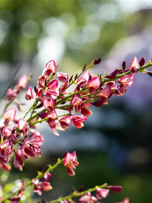 Die roten, schmetterlingsförmigen Blüten erscheinen von April bis Mai. Diese sind leicht duftend.