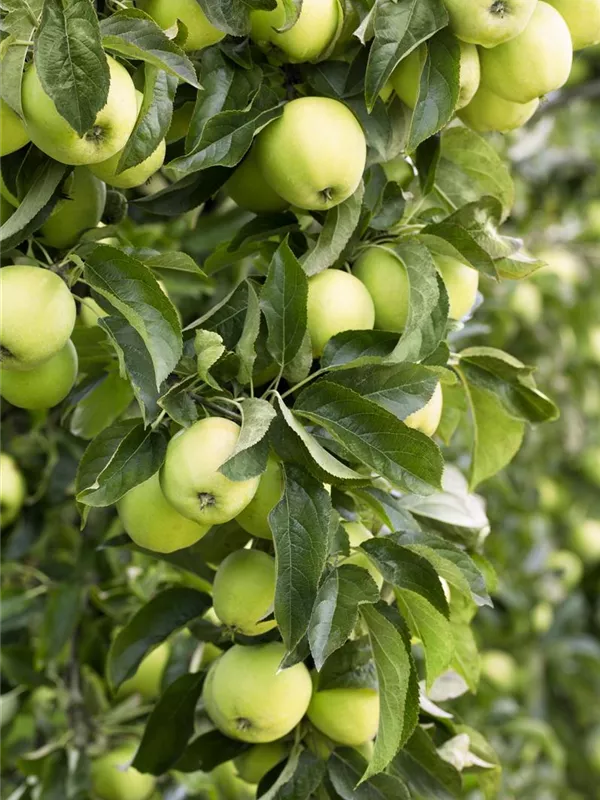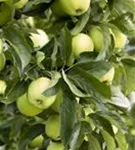 Apfel 'Golden Delicious' ist ein aufrecht und breit wachsender Kleinbaum. Er erreicht gewöhnlich eine Höhe von 2 - 4 m und wird ca. 2 - 3 m breit. In der Regel wächst er 20 - 40 cm pro Jahr.