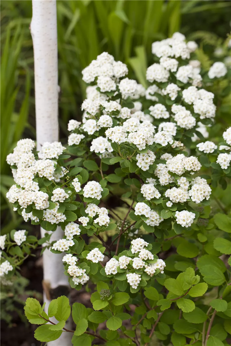 Die Prachtspiere bildet weiße Blüten von Mai bis Juni.