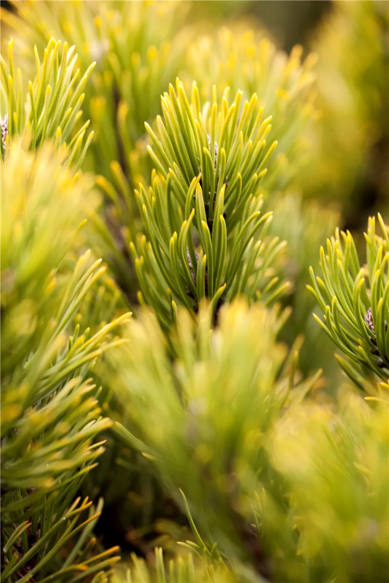 Sehr dekorativ. Die Berg-Kiefer 'Ophir' ist immergrün. Ihre Nadeln sind mittelgrün. Mit seinem grüngelben laub setzt sie schöne Akzente im Winter.