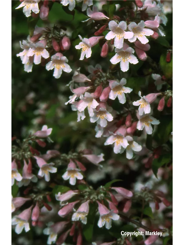 Kolkwitzia amabilis wächst überhängend und erreicht gewöhnlich eine Höhe von 2 - 4 m und wird bis zu 2 - 3 m breit.