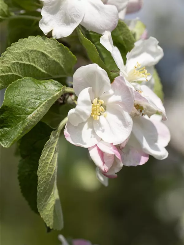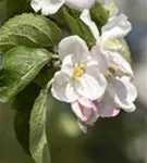 Malus domestica 'Jakob Lebel' bildet hellrosafarbene Blüten ab April.