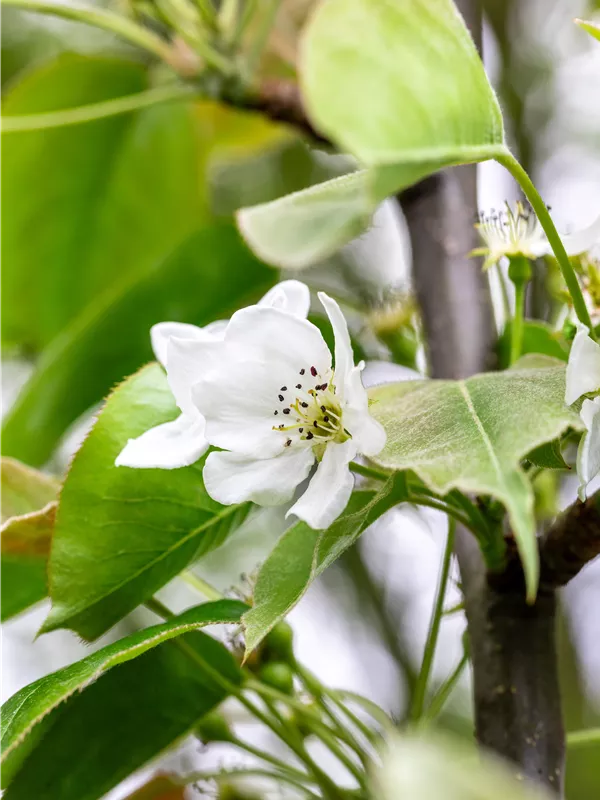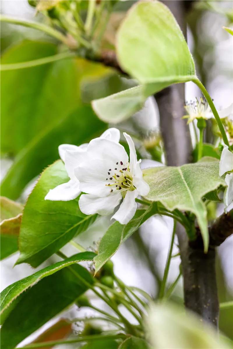Pyrus pyrifolia 'Nijisseiki' bildet weiße Blüten ab April.
