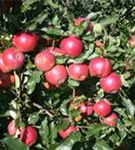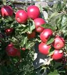 Apfel 'Ecolette'(s) ist ein aufrecht, breit und buschig wachsender Kleinbaum. Er erreicht gewöhnlich eine Höhe von 2 - 2,5 m und wird ca. 2 - 2,5 m breit. In der Regel wächst er 20 - 40 cm pro Jahr.