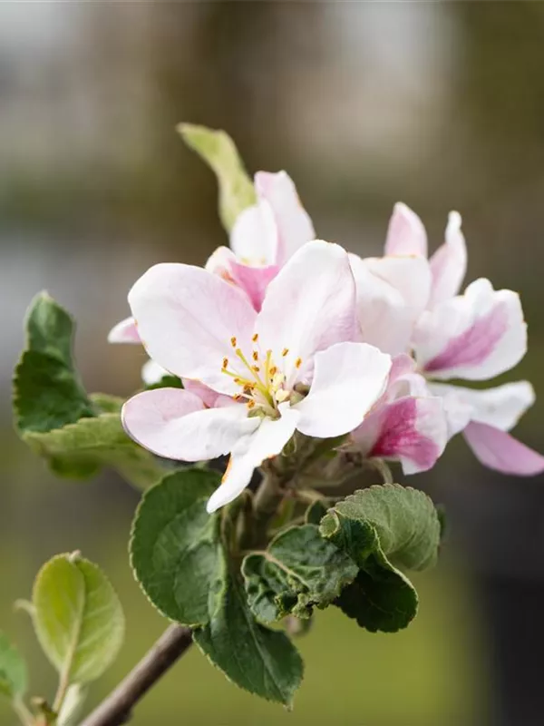 Malus domestica 'Ecolette'(s) bildet hellrosafarbene Blüten ab April.