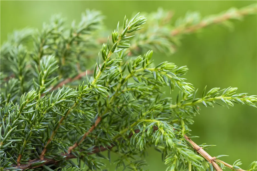 Sehr dekorativ. Der Zwergwacholder 'Holger' ist immergrün. Seine Nadeln sind blau-grün. Hellgelber Austrieb.