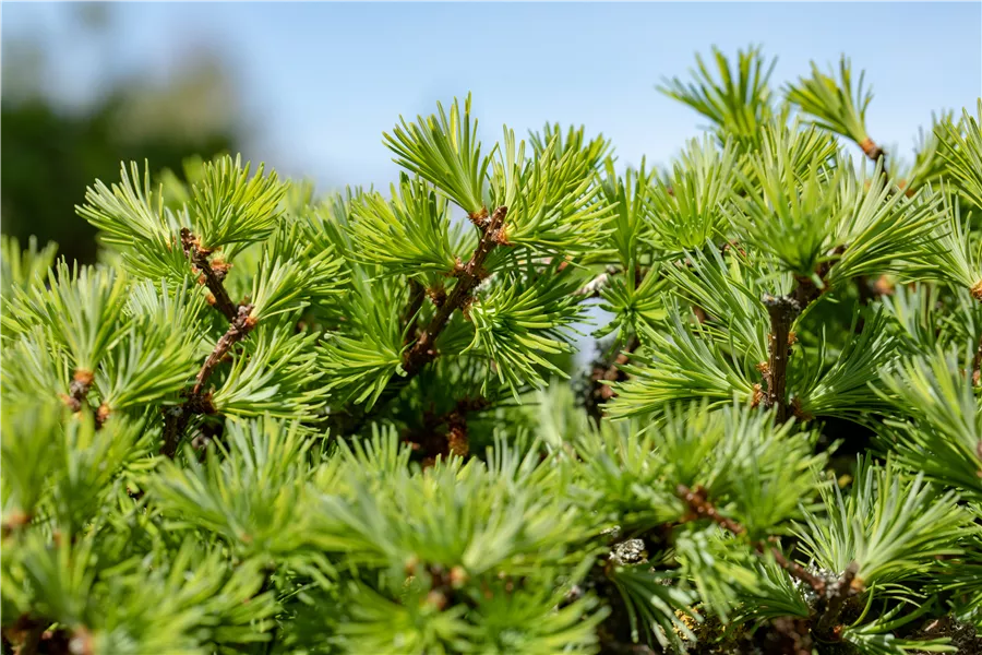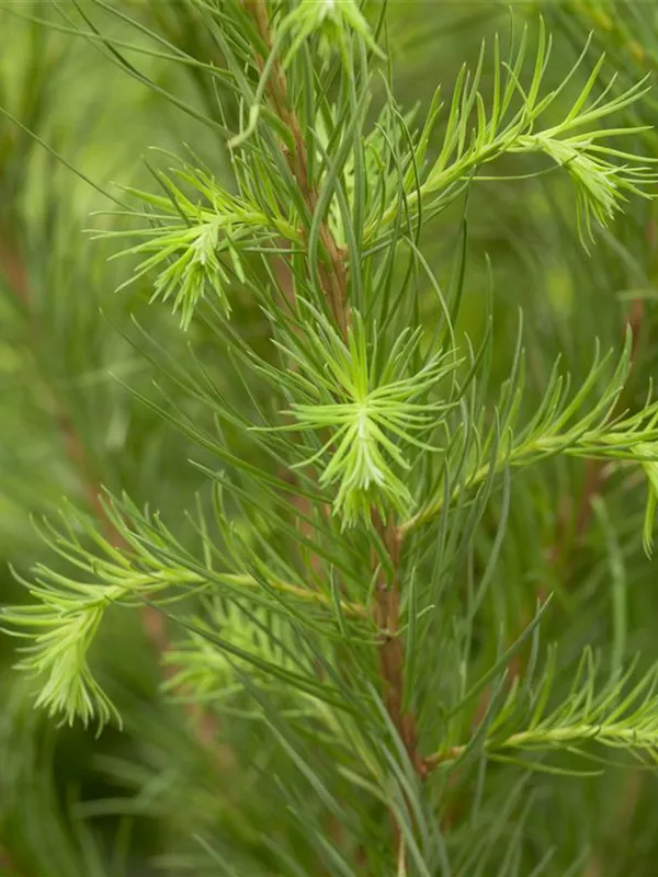 Die Europäische Lärche ist sommergrün. Ihre Nadeln sindhellgrün. Europäische Lärche zeigt sich leuchtend goldgelb im Herbst.