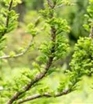 Besonders dekorativ sind die braunen, runden Zapfen von Taxodium distichum 'Peve Minaret'. Diese erscheinen ab Oktober.Die jungen Zapfen haben eine grüne Färbung.