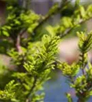 Die Sumpfzypresse 'Peve Minaret' ist sommergrün. Ihre Nadeln sindhellgrün, wechselständig. Sumpfzypresse 'Peve Minaret' zeigt sich leuchtend rot-braun im Herbst.