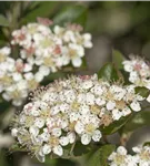 Aronia melanocarpa 'Nero' bildet in Rispen angeordnete, weiße Blüten ab Mai.