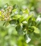 Aronia melanocarpa 'Viking' bildet in Rispen angeordnete, weiße Blüten ab Mai.