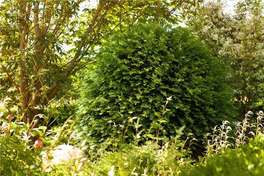 Die Eibe 'Hessei' setzt schöne Akzente gemeinsam mit: